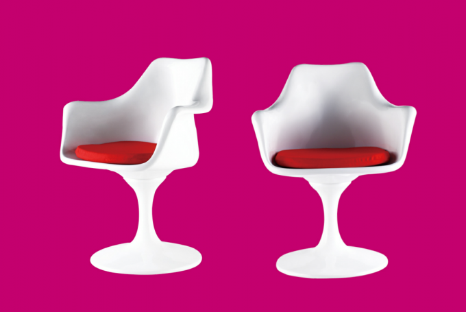Pada tahun 1956 Eero Saarinen merancang berbagai meja dan kursi gratis yang ia beri nama rangkaian Tulip karena batangnya yang ramping dan anggun seperti alas dan bentuk organik yang menjadi ciri keping-kepingnya. Seperti namanya Eero Aarnios 'desain penggunaan eksperimental bahan dan bentuk minimalis sering dianggap sebagai usia ruang dan daya tarik mereka telah melampaui periode dalam sejarah dari mana mereka berasal.